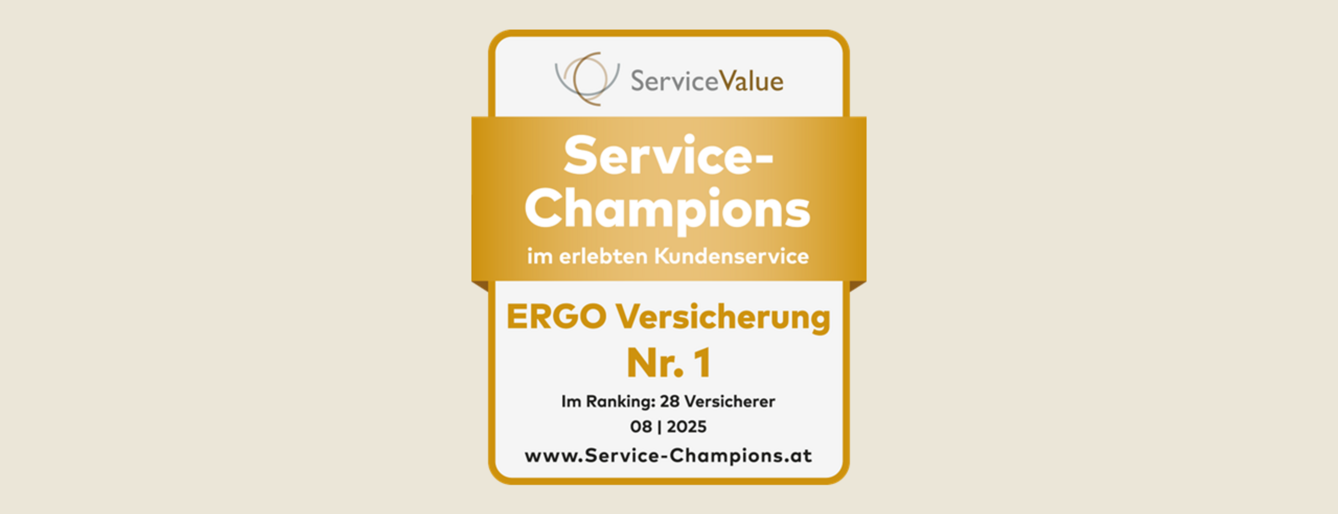 Die erfolgreiche Umsetzung konnten wir auch dieses Jahr wieder unter Beweis stellen: ERGO liegt mit einem Serviceerlebnis-Wert von 77,6% deutlich über dem Branchendurchschnitt und steht damit bereits zum 11. Mal in Folge auf dem 1. Platz der österreichischen Versicherungsbranche.