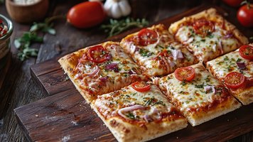 Zutaten: 1 Packung Blätterteig (270 g), 100 g Tomatensauce, 150 g geriebener Mozzarella, 50 g Belag Ihrer Wahl.