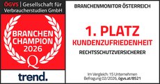 1. Platz - "Kundenzufriedenheit" in der Rechtsschutzversicherung - ÖGVS